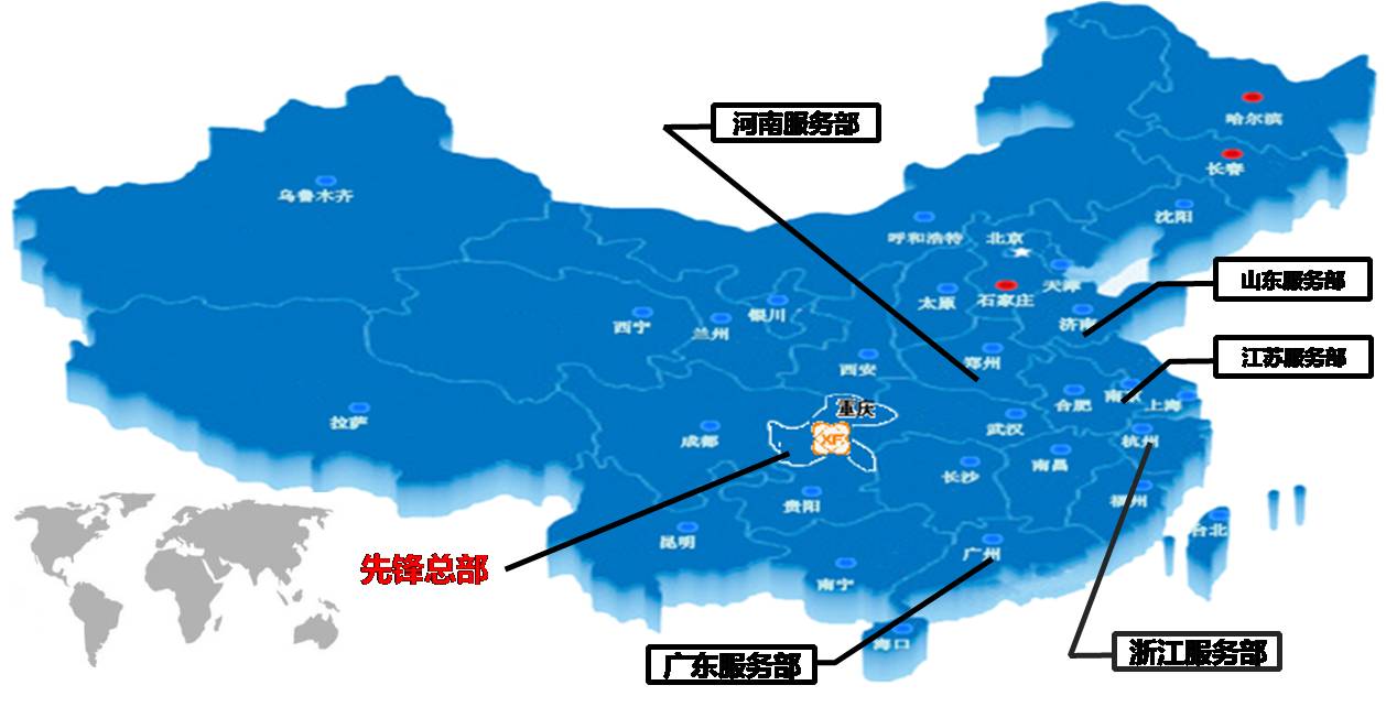 公司總部設立在山(shān)城(chéng)重慶,另在山(shān)東(dōng)、江蘇、河(hé)南(nán)、廣東(dōng)、浙江設有(yǒu)五個(gè)₽駐外(wài)服務部,能(néng)夠快(kuài)速了(le)解市(shì)場(chǎng)信息、迅速反應。